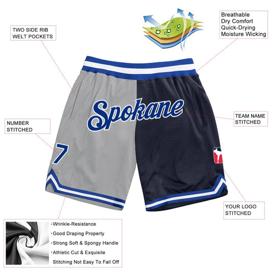 Custom Gray Royal-Navy Authentic Throwback Split Fashion Basketball ShortsRegular price $29.99 USDRegular priceUnit price / per$58.99 USDSale price $29.99 USDSale