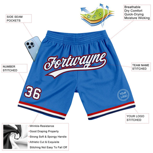 • Custom Blue White-Red Authentic Throwback Basketball Shorts