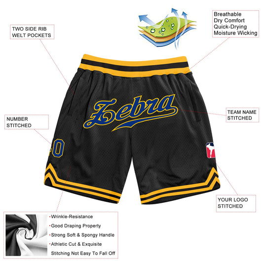 Custom Black Royal-Gold Authentic Throwback Basketball Shorts