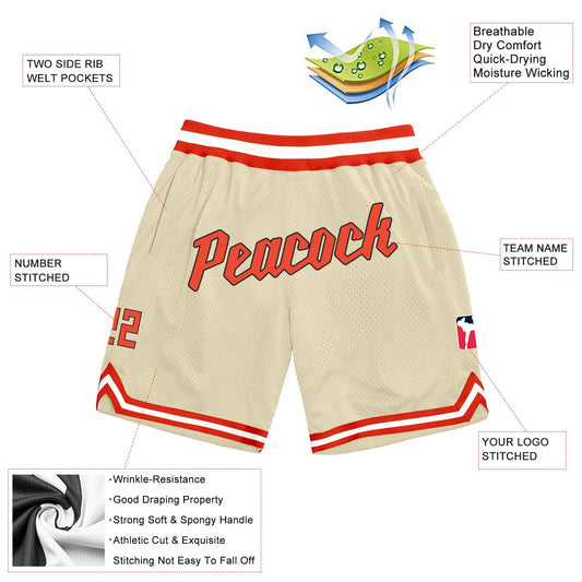 Custom Cream Orange-White Authentic Throwback Basketball Shorts