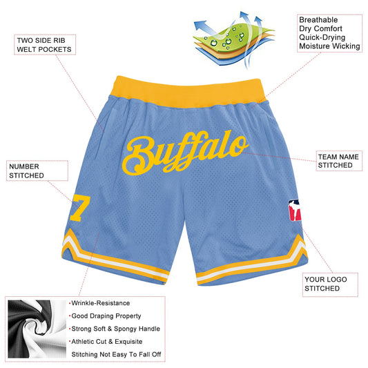 Custom Light Blue Gold Authentic Throwback Basketball Shorts