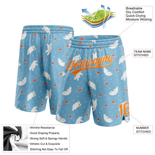 Custom Light Blue Bay Orange-White 3D Pattern Polar Bear And Fish Authentic Basketball Shorts