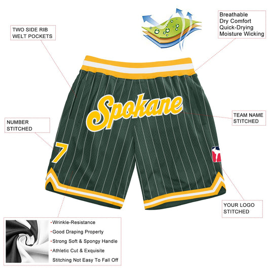 Custom Hunter Green White Pinstripe Gold-White Authentic Basketball Shorts