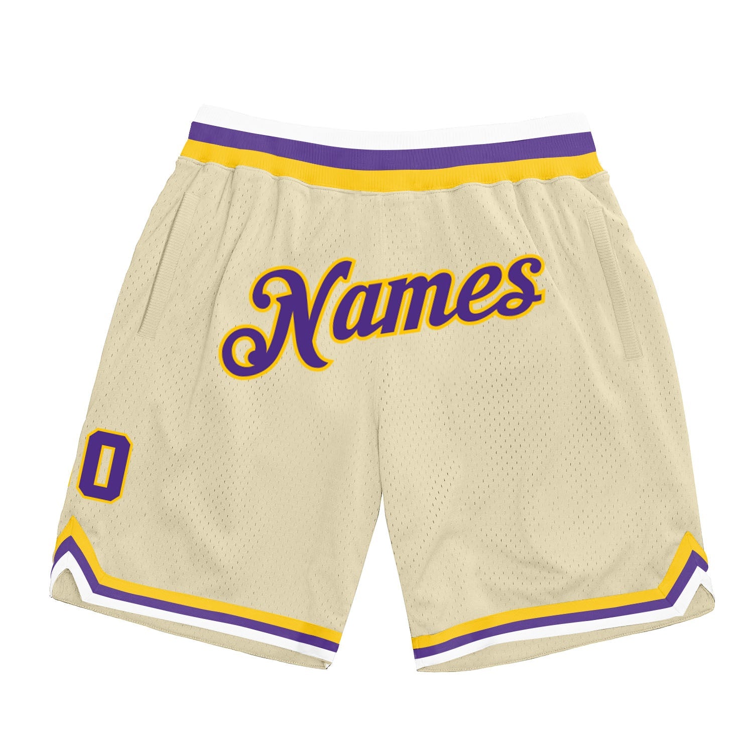 Custom Cream Purple-Gold Authentic Throwback Basketball Shorts