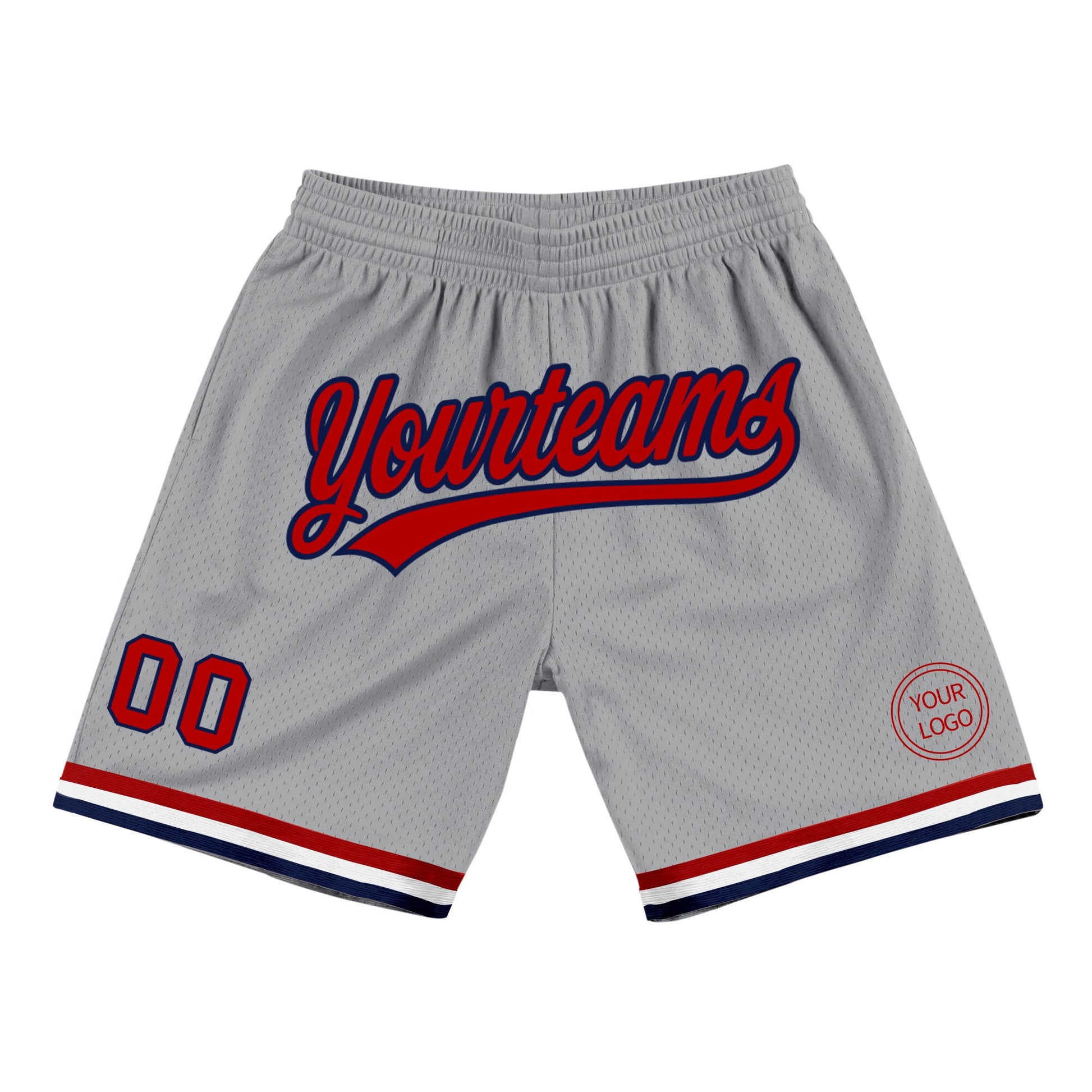 Custom Gray Red-Navy Authentic Throwback Basketball Shorts