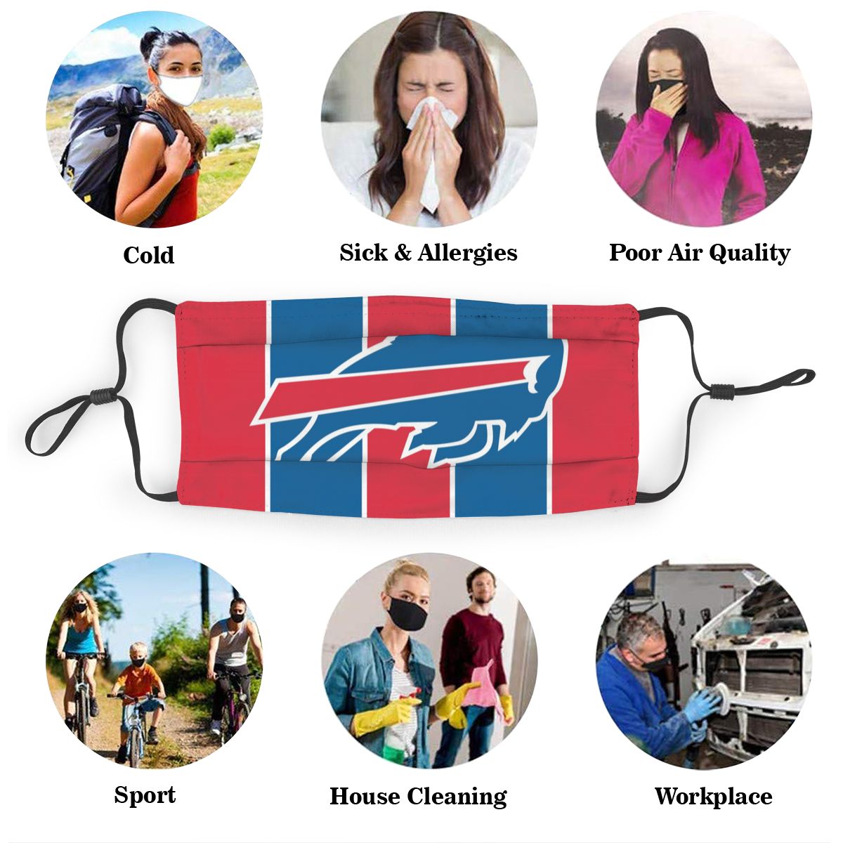 Custom Football Personalized B.Bill 01-Red Dust Face Mask With Filters PM 2.5