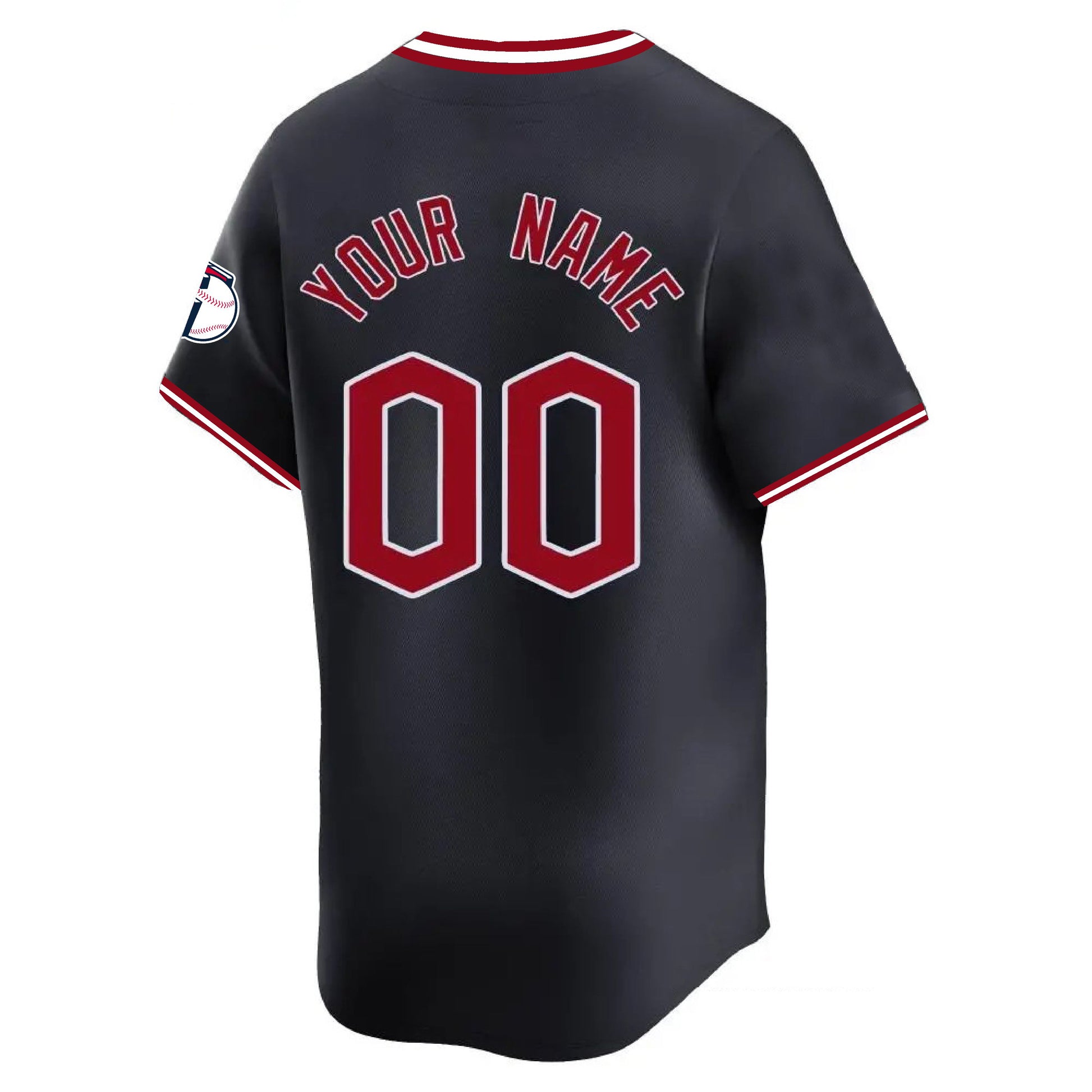 - Jersey with stitched name and number, with the shield on the collar.
