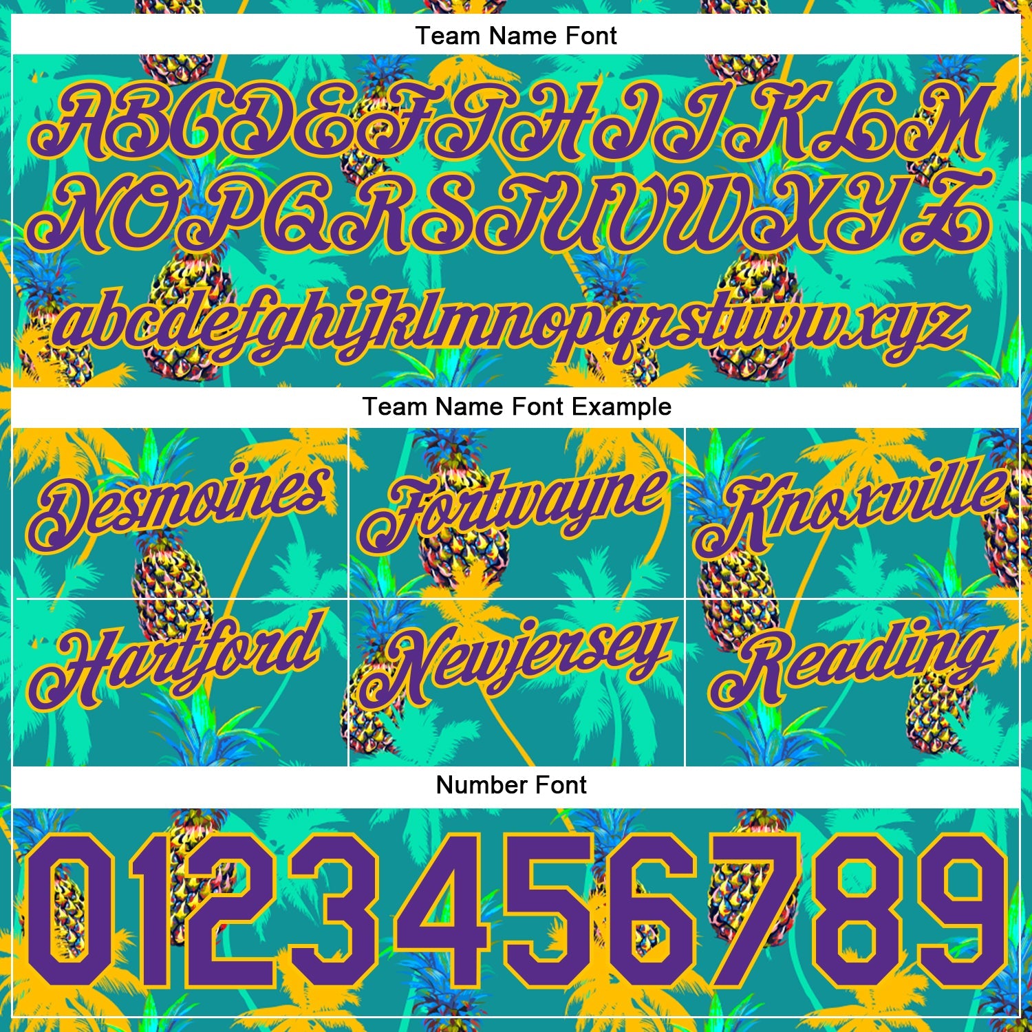Custom Kelly Green Purple-Gold 3D Pattern Design Palm Trees Pineapples Authentic Basketball Shorts