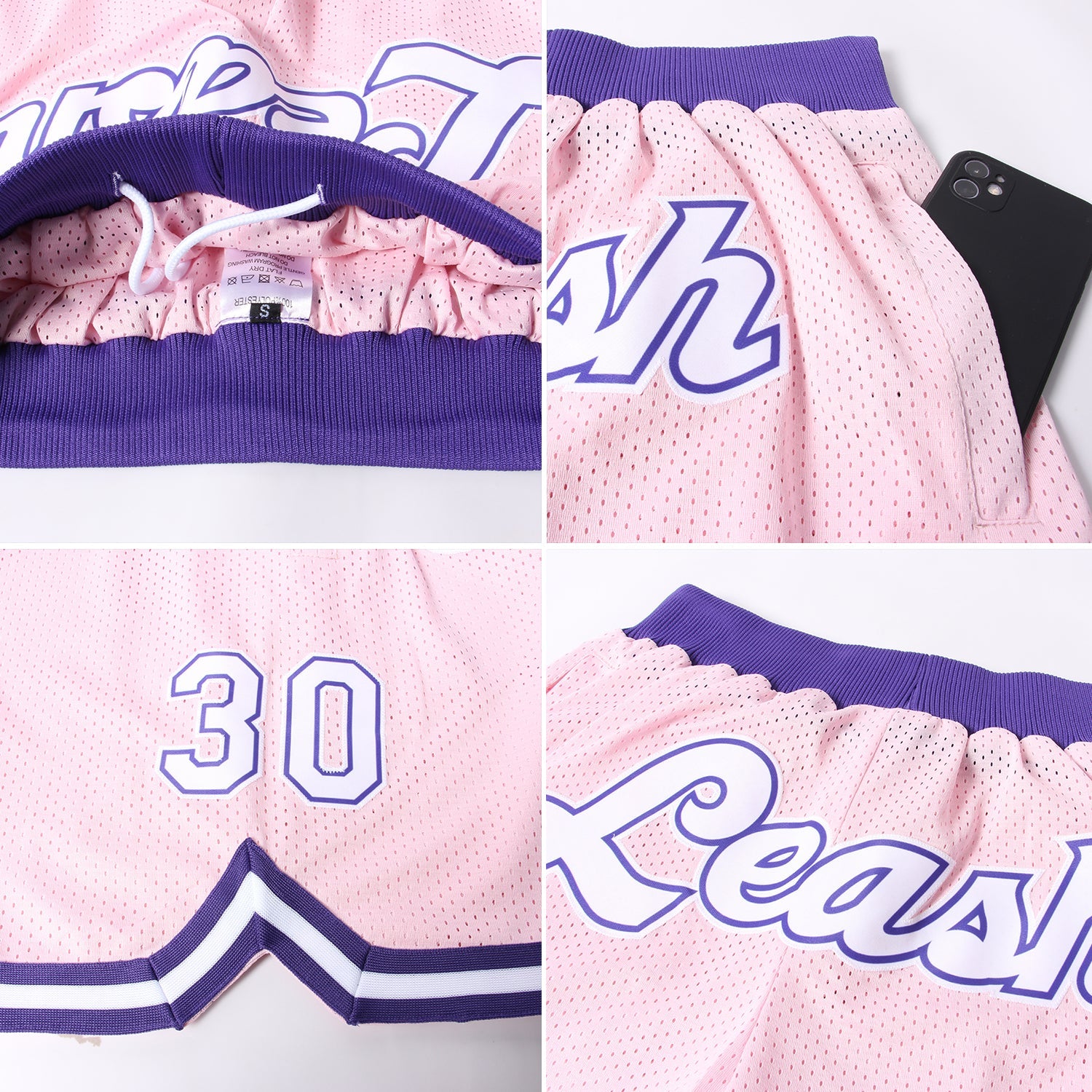 Custom Light Pink White-Purple Authentic Throwback Basketball Shorts