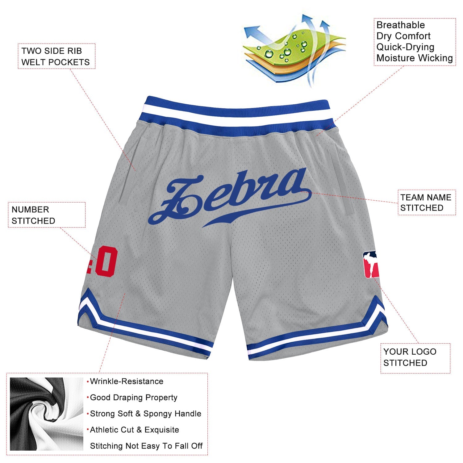 Custom Gray Royal-Red Authentic Throwback Basketball Shorts