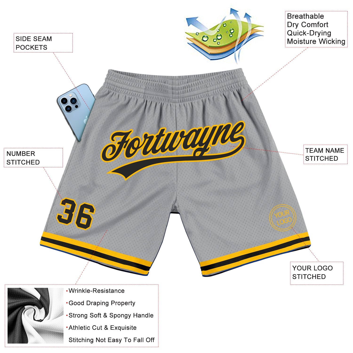 Custom Gray Black-Gold Authentic Throwback Basketball Shorts