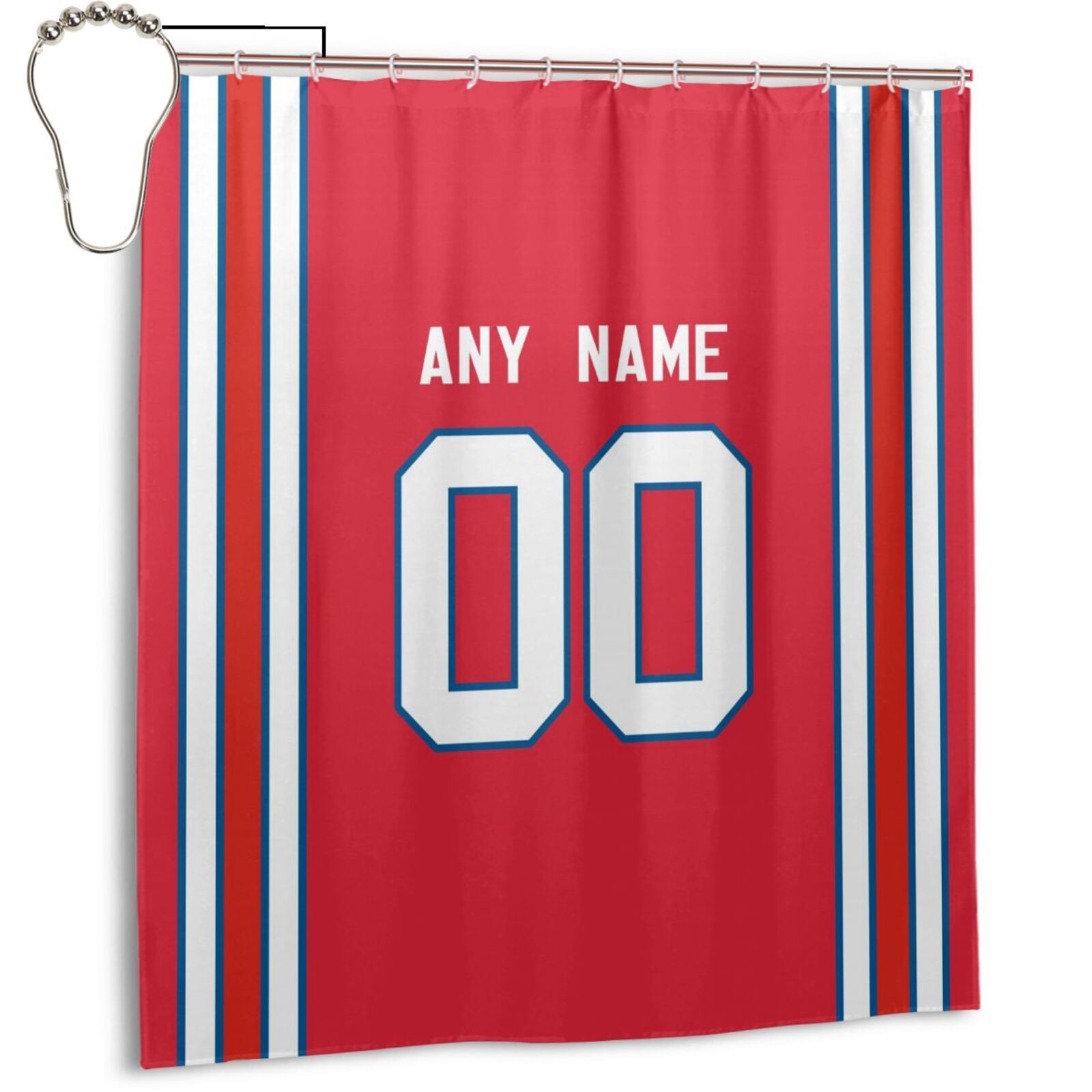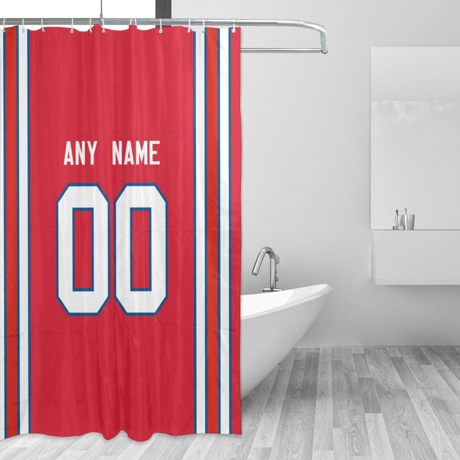 Custom Football Buffalo Bills style personalized shower curtain custom design name and number set of 12 shower curtain hooks Rings