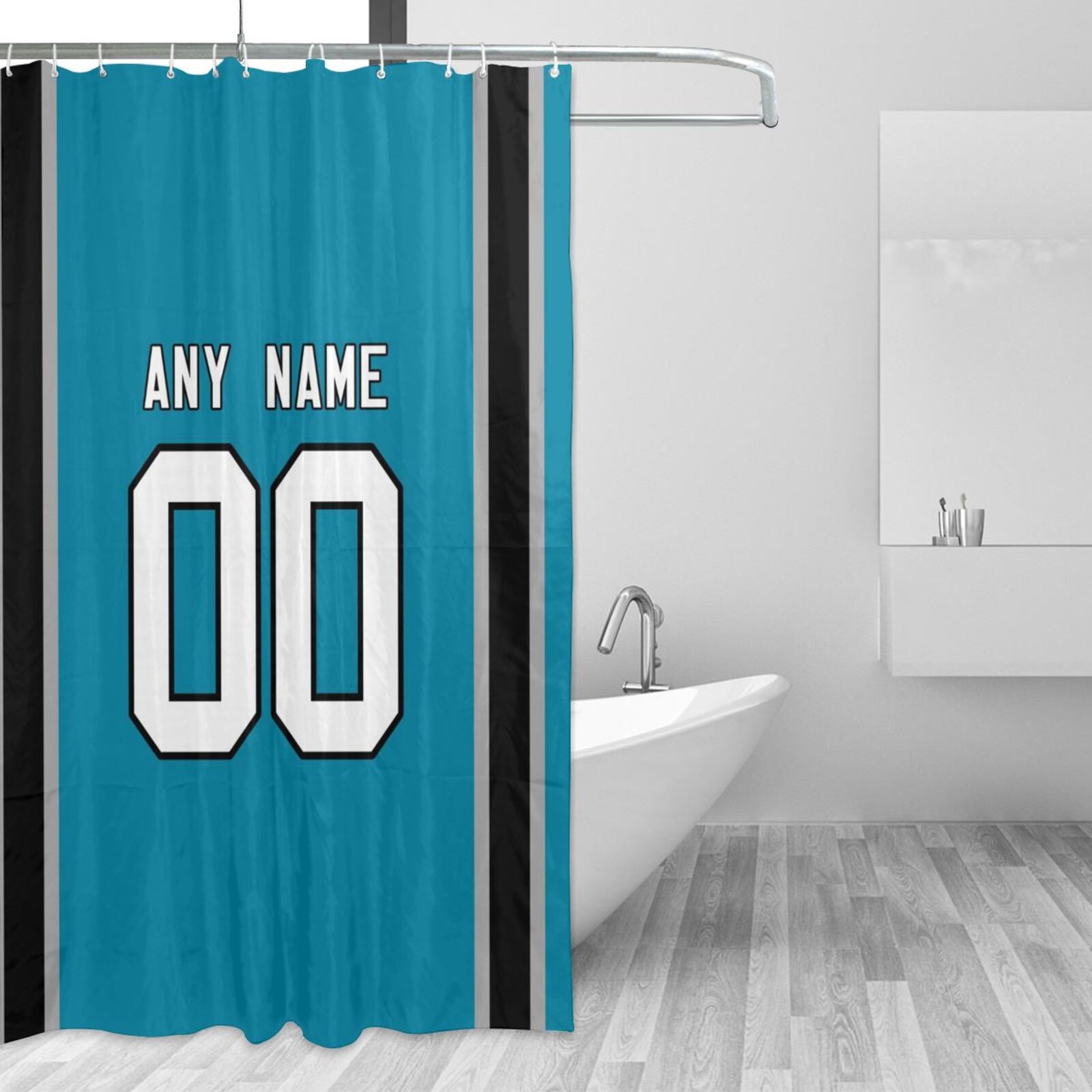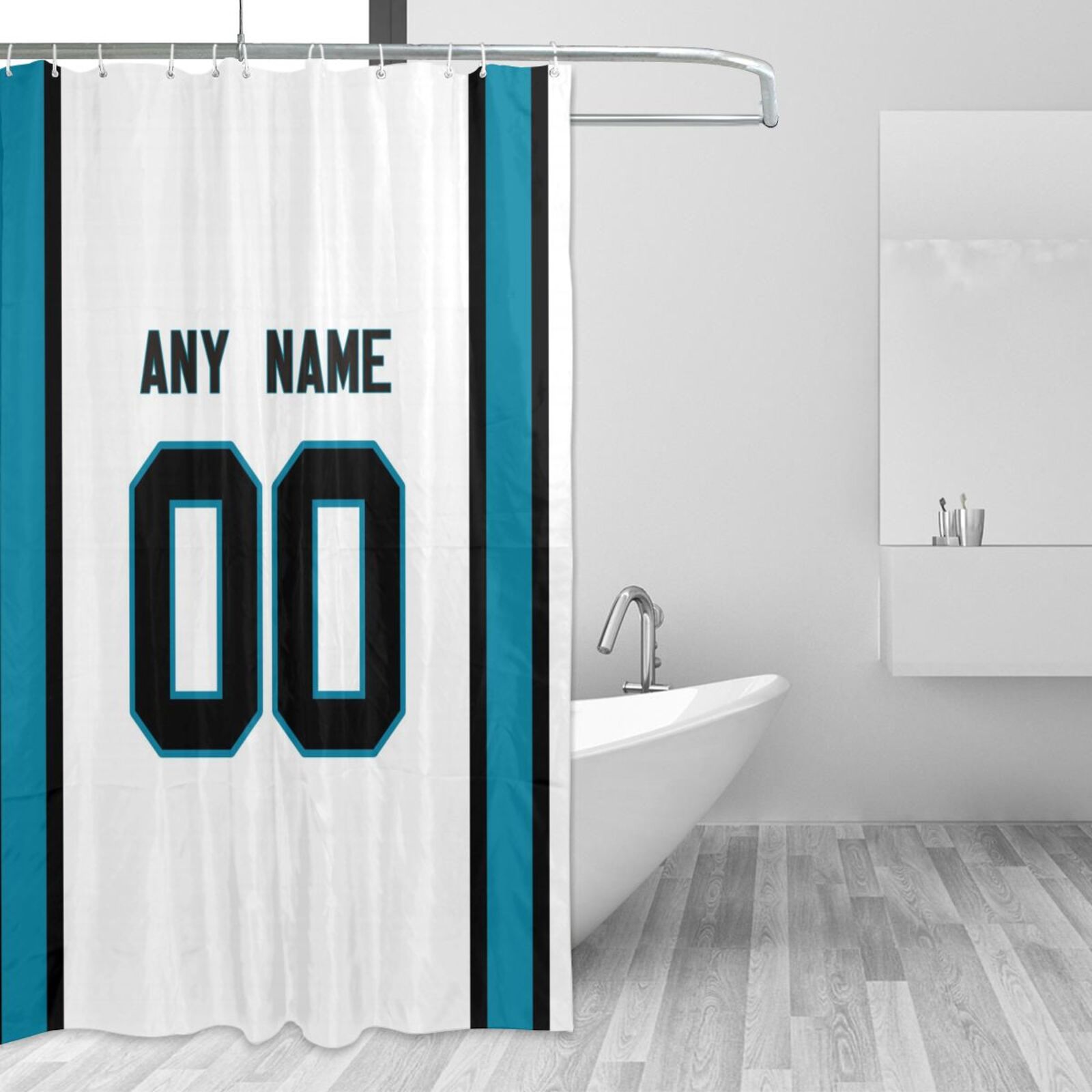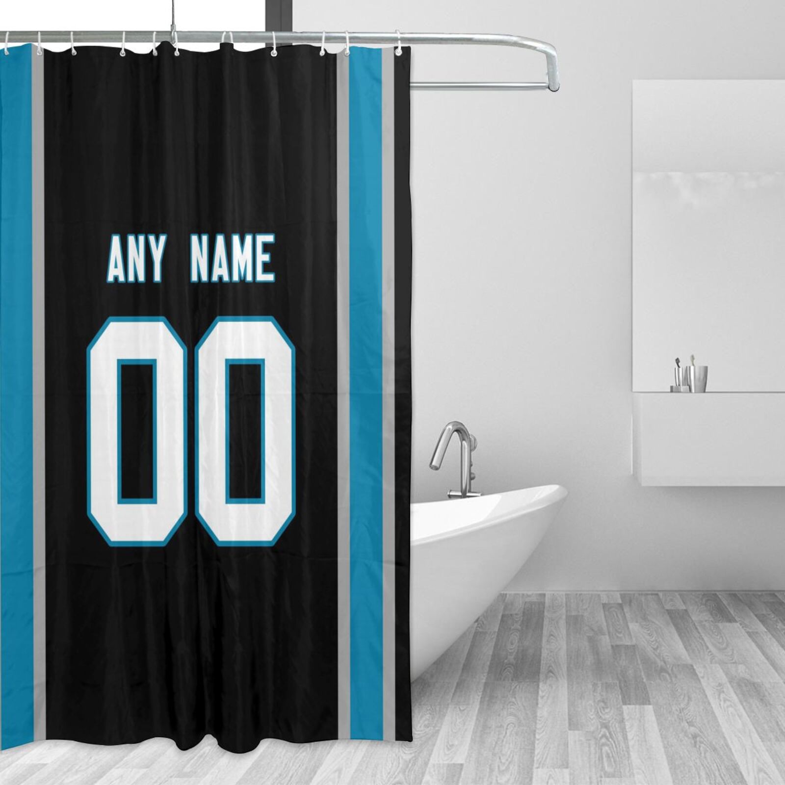 Custom Football Carolina Panthers style personalized shower curtain custom design name and number set of 12 shower curtain hooks Rings