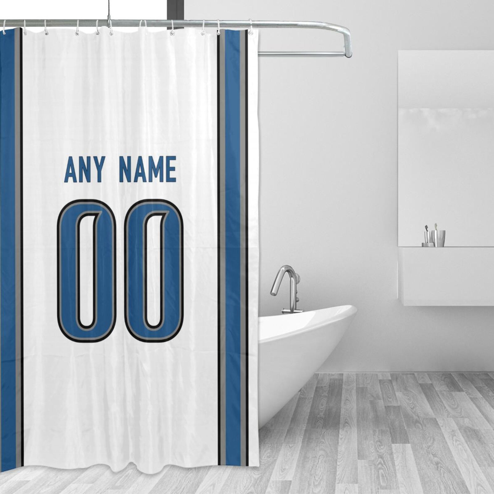 Custom Football Detroit Lions style personalized shower curtain custom design name and number set of 12 shower curtain hooks Rings