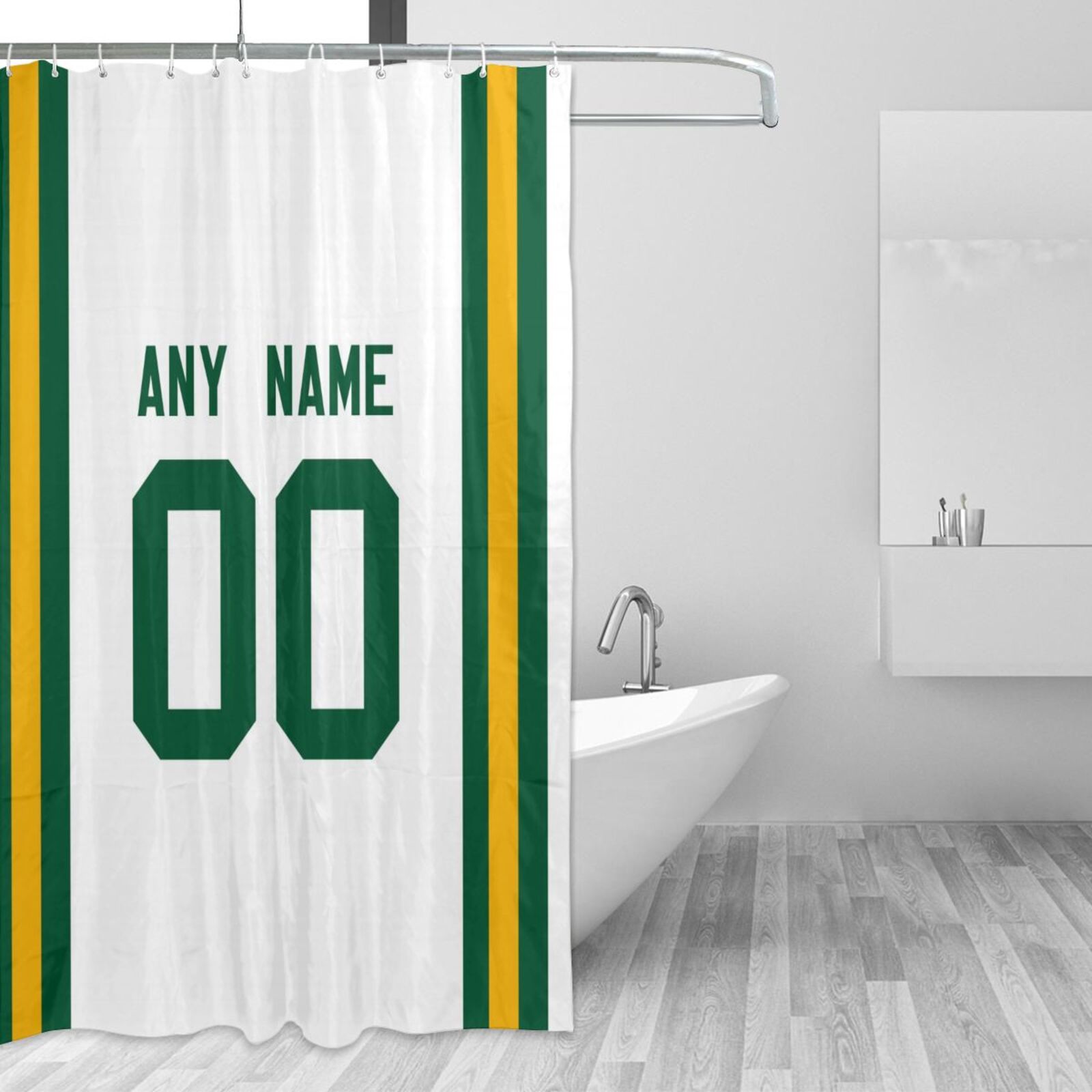 Custom Football Green Bay Packers style personalized shower curtain custom design name and number set of 12 shower curtain hooks Rings