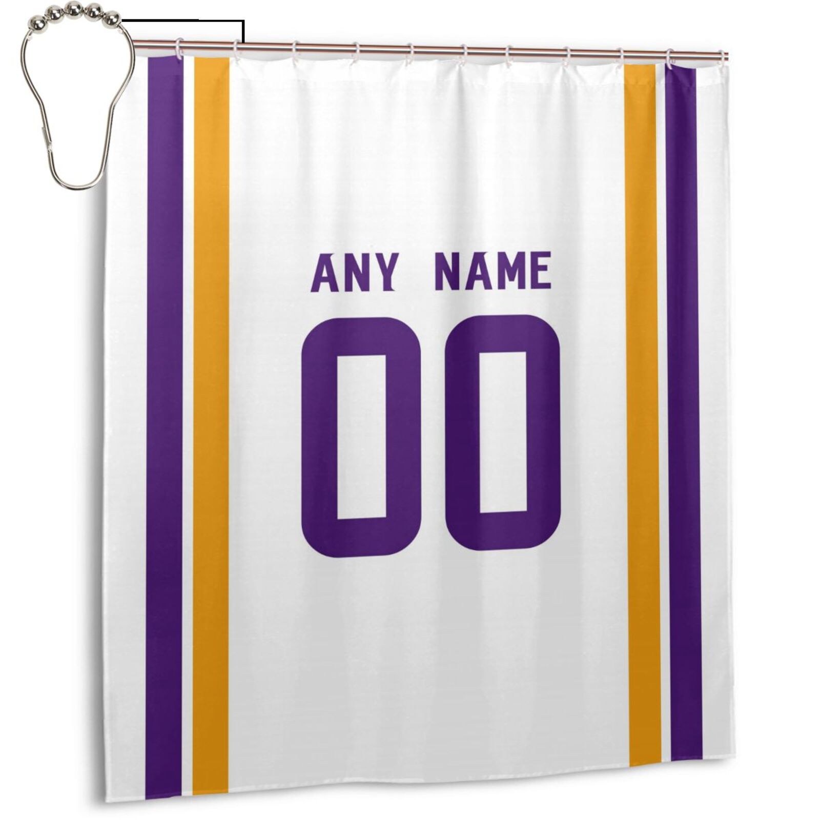 Custom Football Minnesota Vikings style personalized shower curtain custom design name and number set of 12 shower curtain hooks Rings
