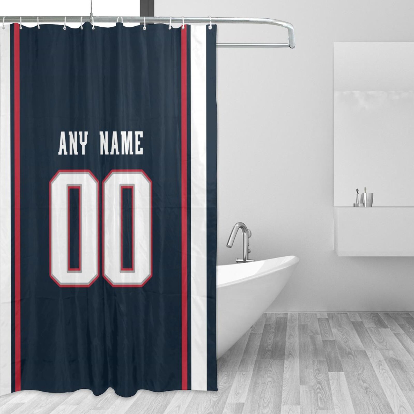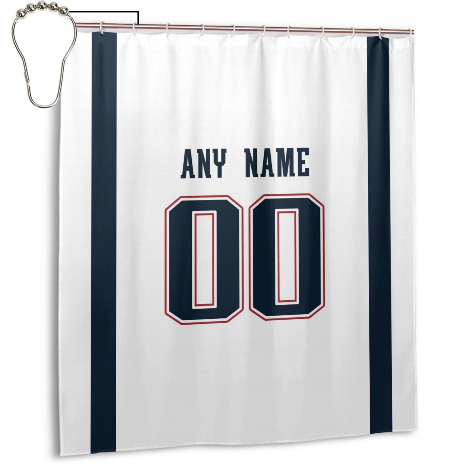 Custom Football New England Patriots style personalized shower curtain custom design name and number set of 12 shower curtain hooks Rings