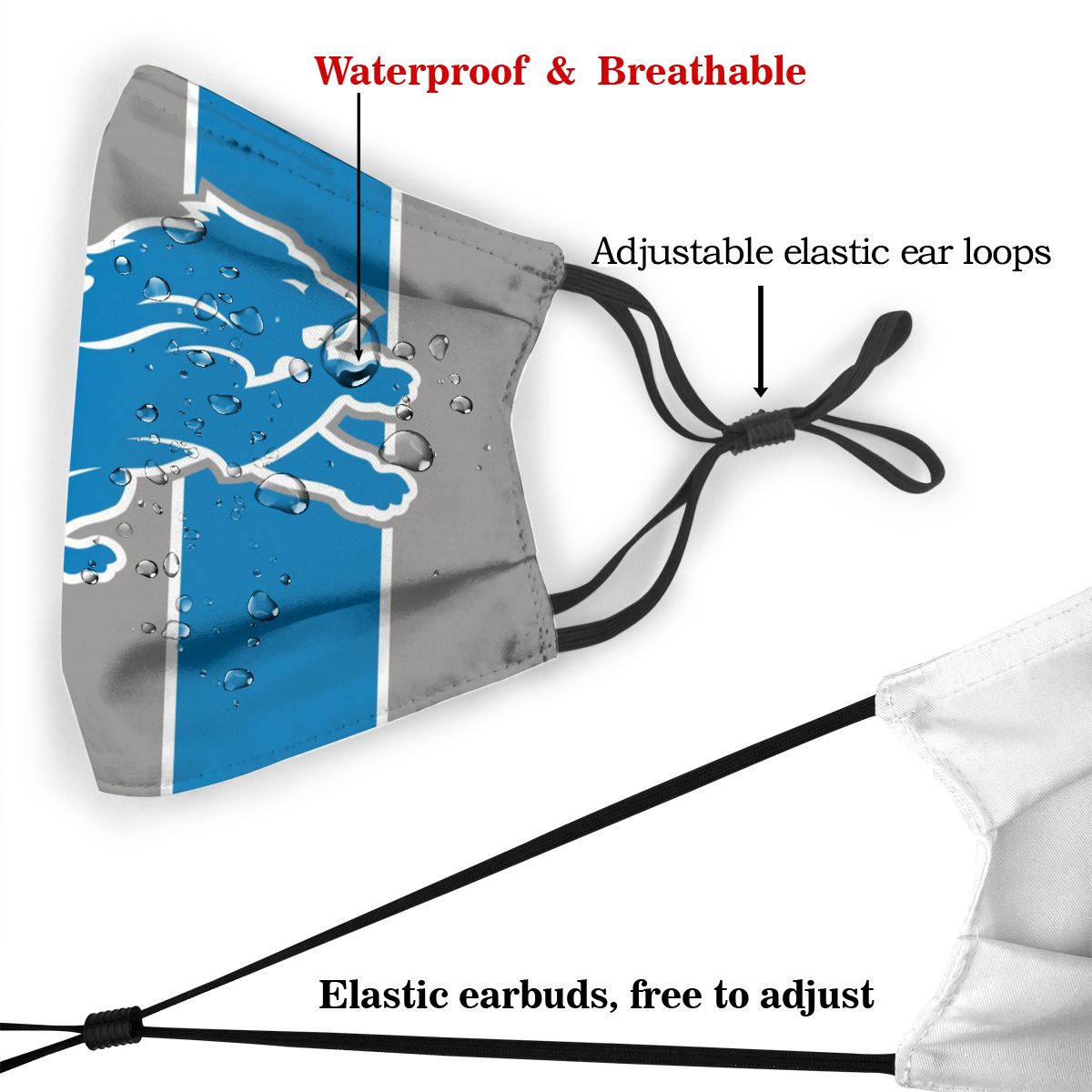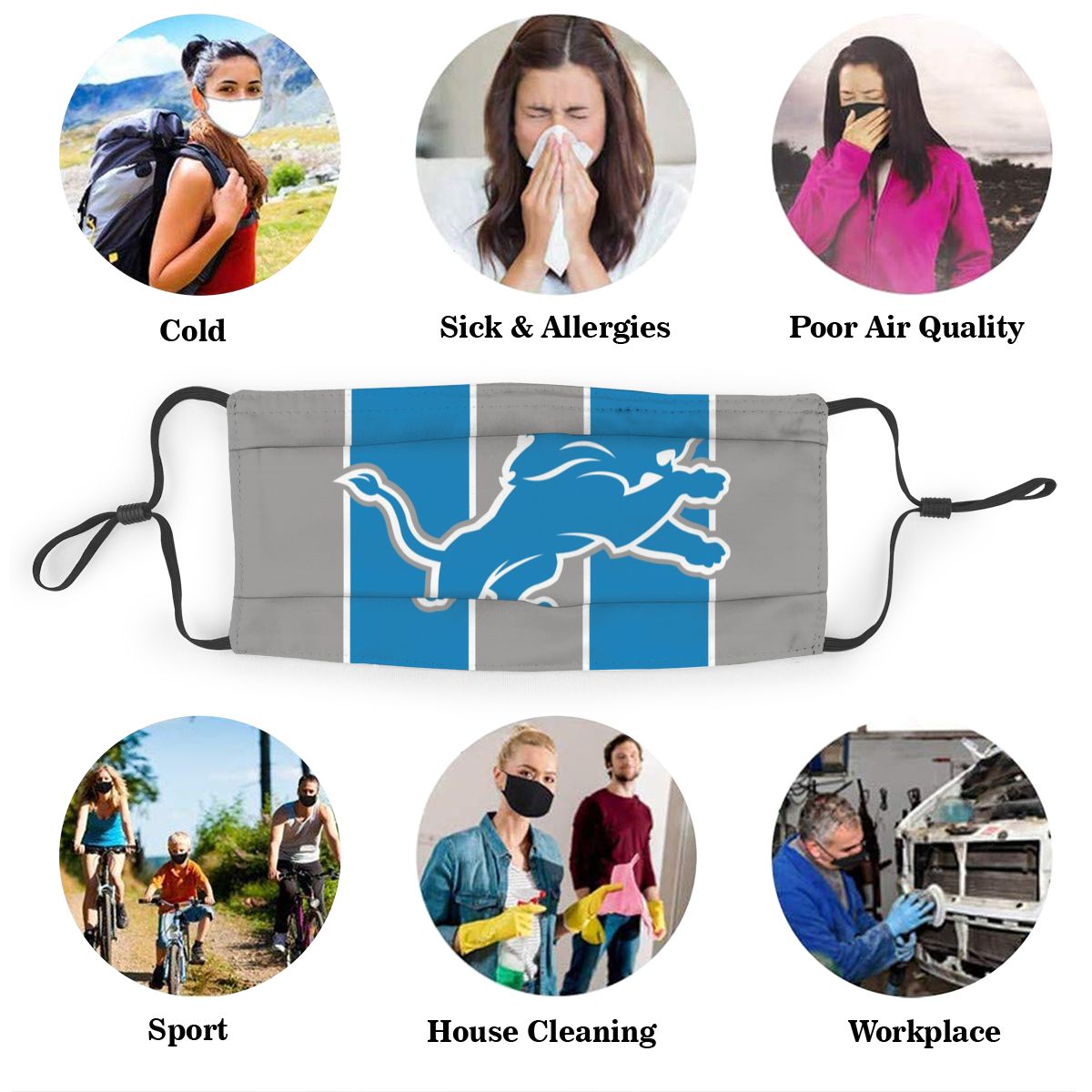 Custom Football Personalized D.Lion 01-Grey Dust Face Mask With Filters PM 2.5