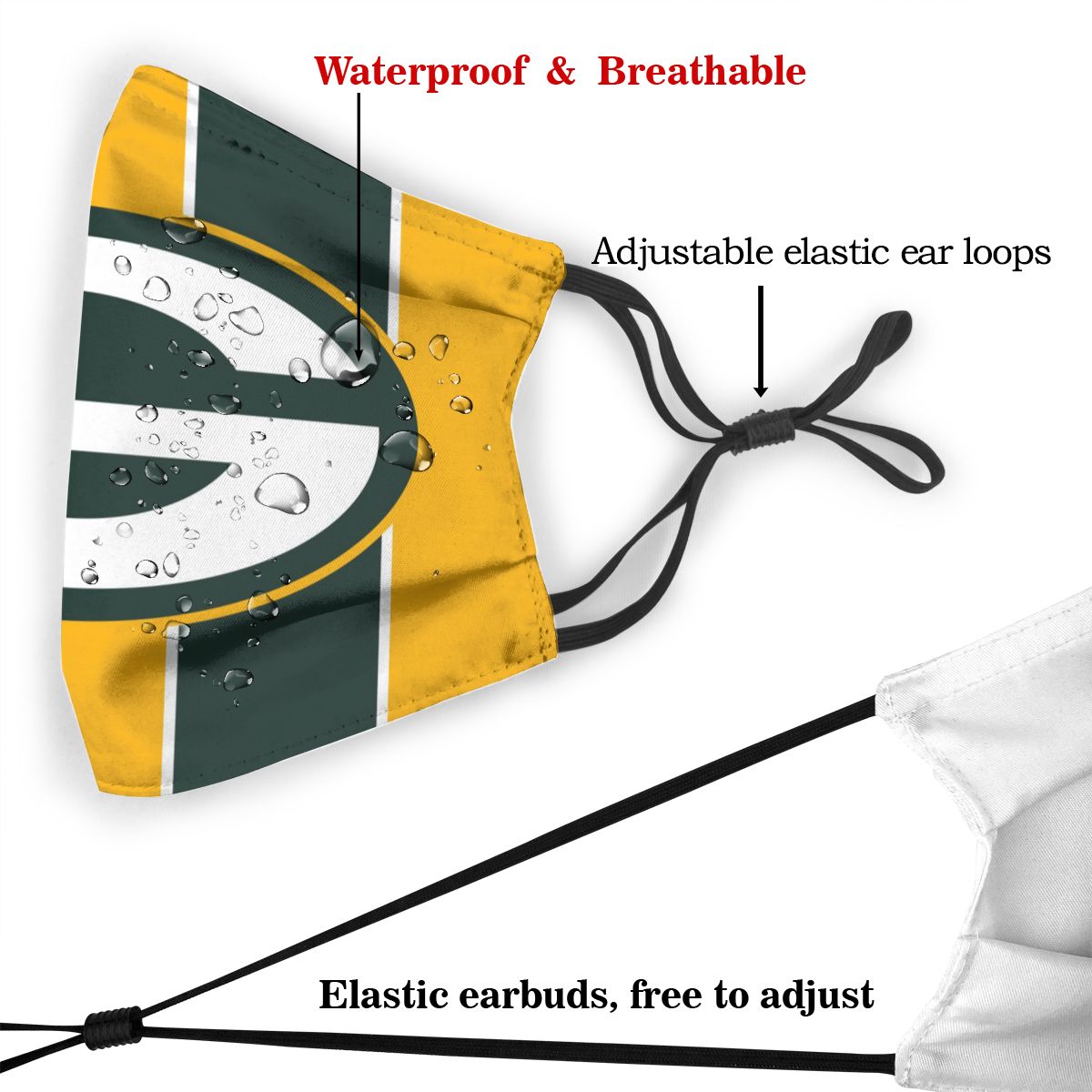 Custom Football Personalized GB Packer 01-Gold Dust Face Mask With Filters PM 2.5