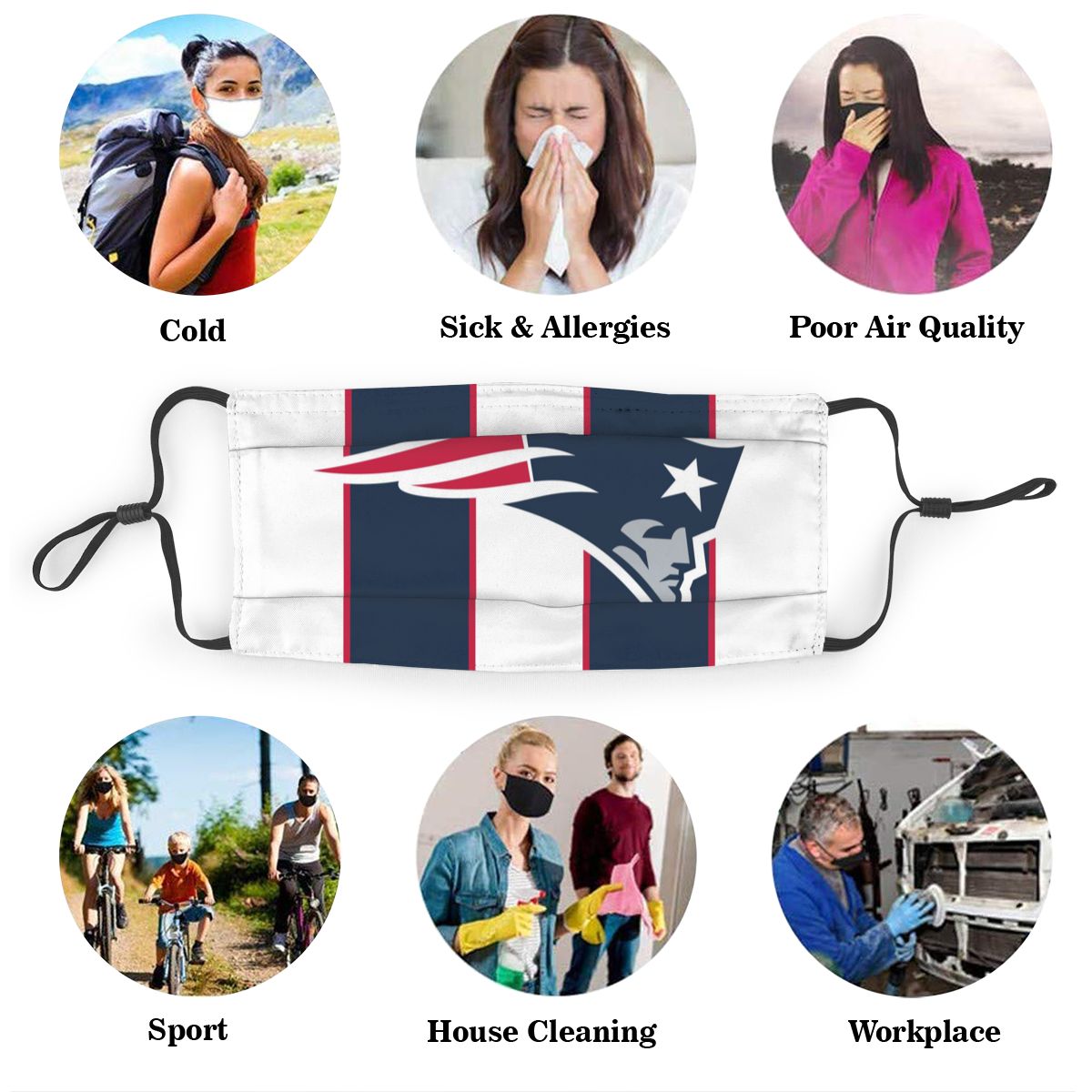 Custom Football Personalized NE.Patriot 01-White Dust Face Mask With Filters PM 2.5