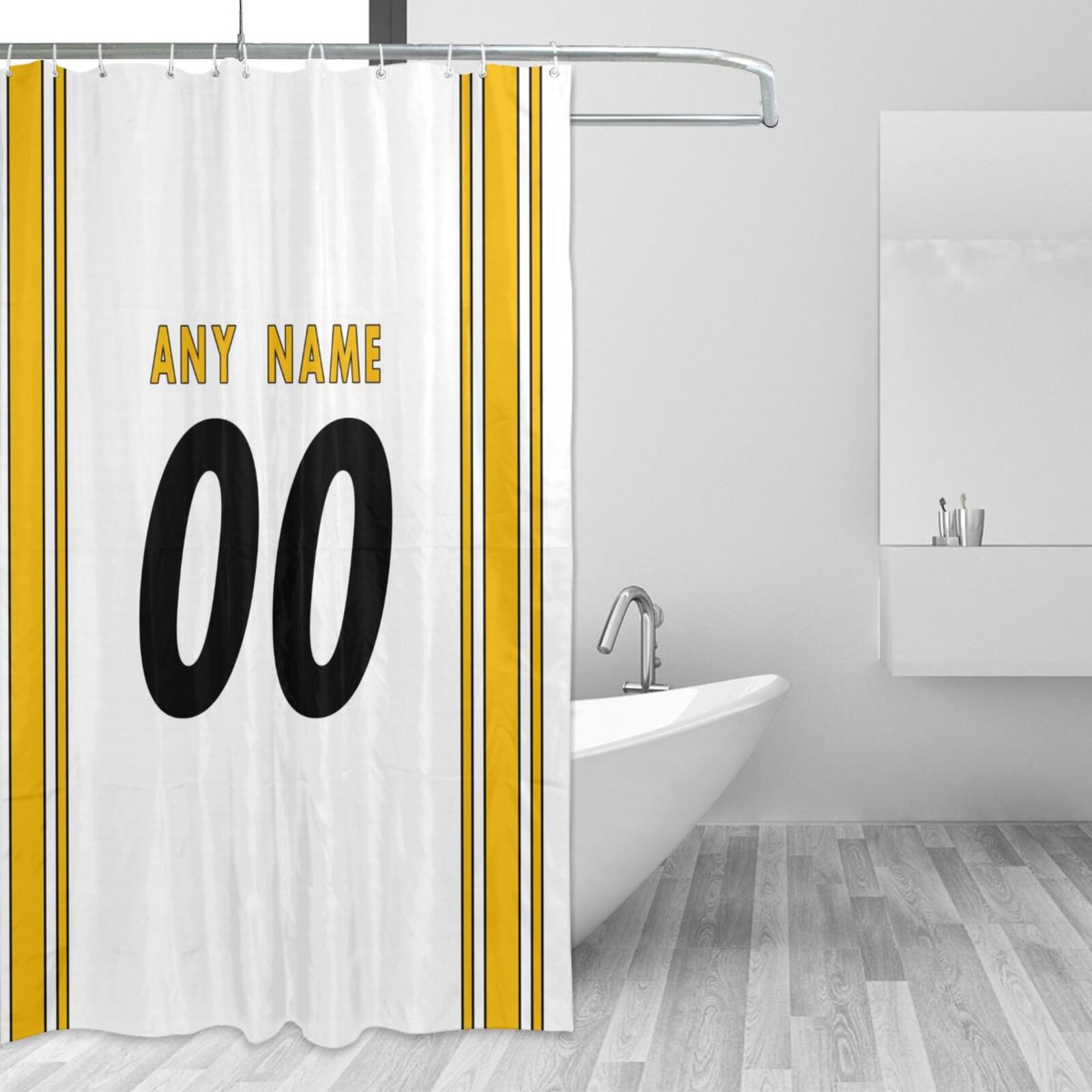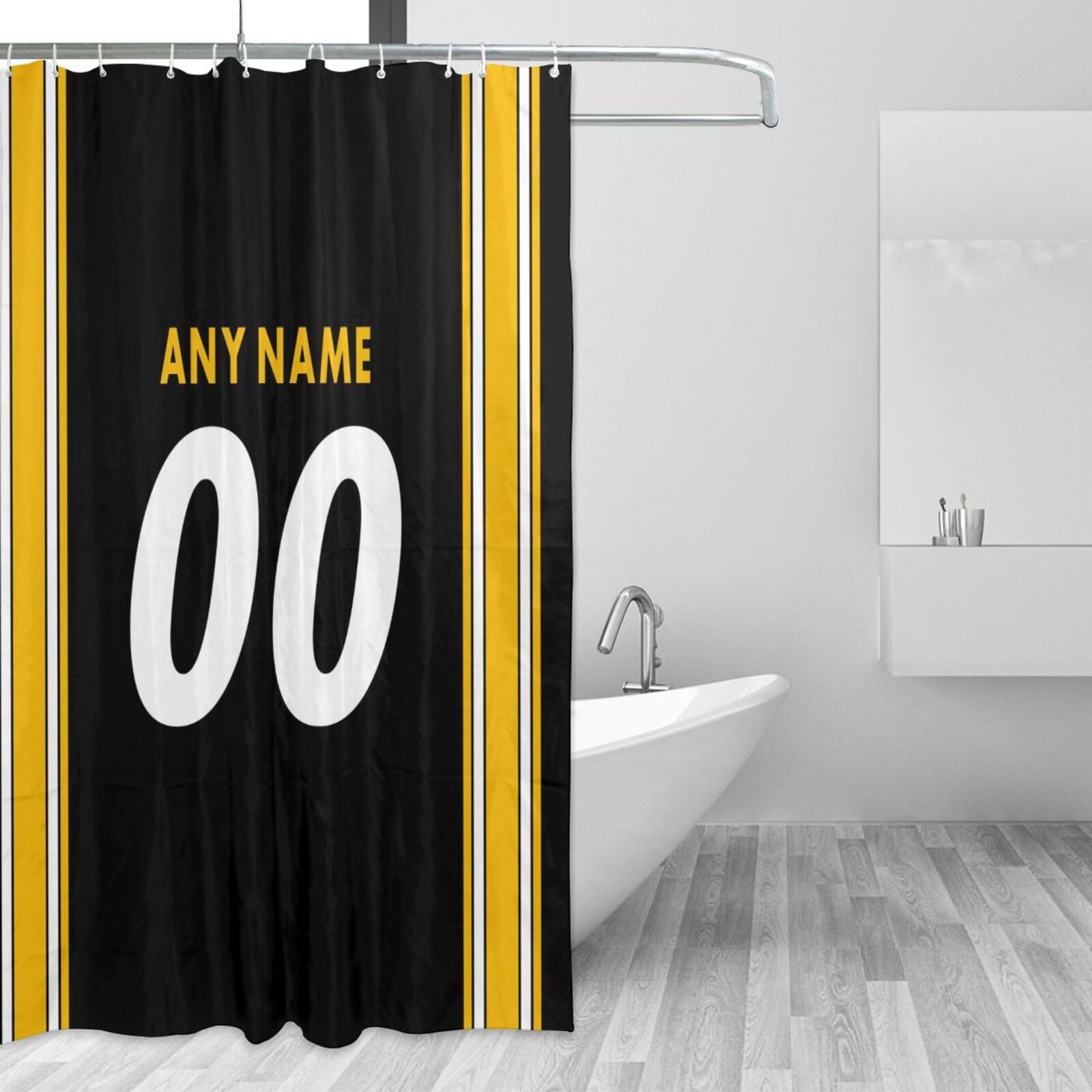 Custom Football Pittsburgh Steelers style personalized shower curtain custom design name and number set of 12 shower curtain hooks Rings