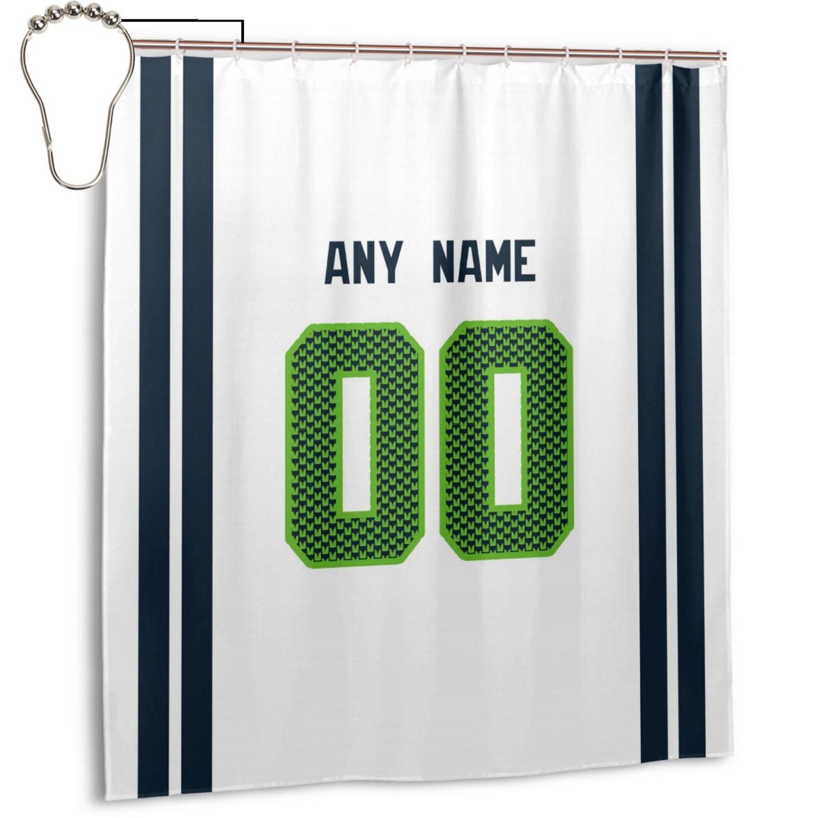 Custom Football Seattle Seahawks style personalized shower curtain custom design name and number set of 12 shower curtain hooks Rings
