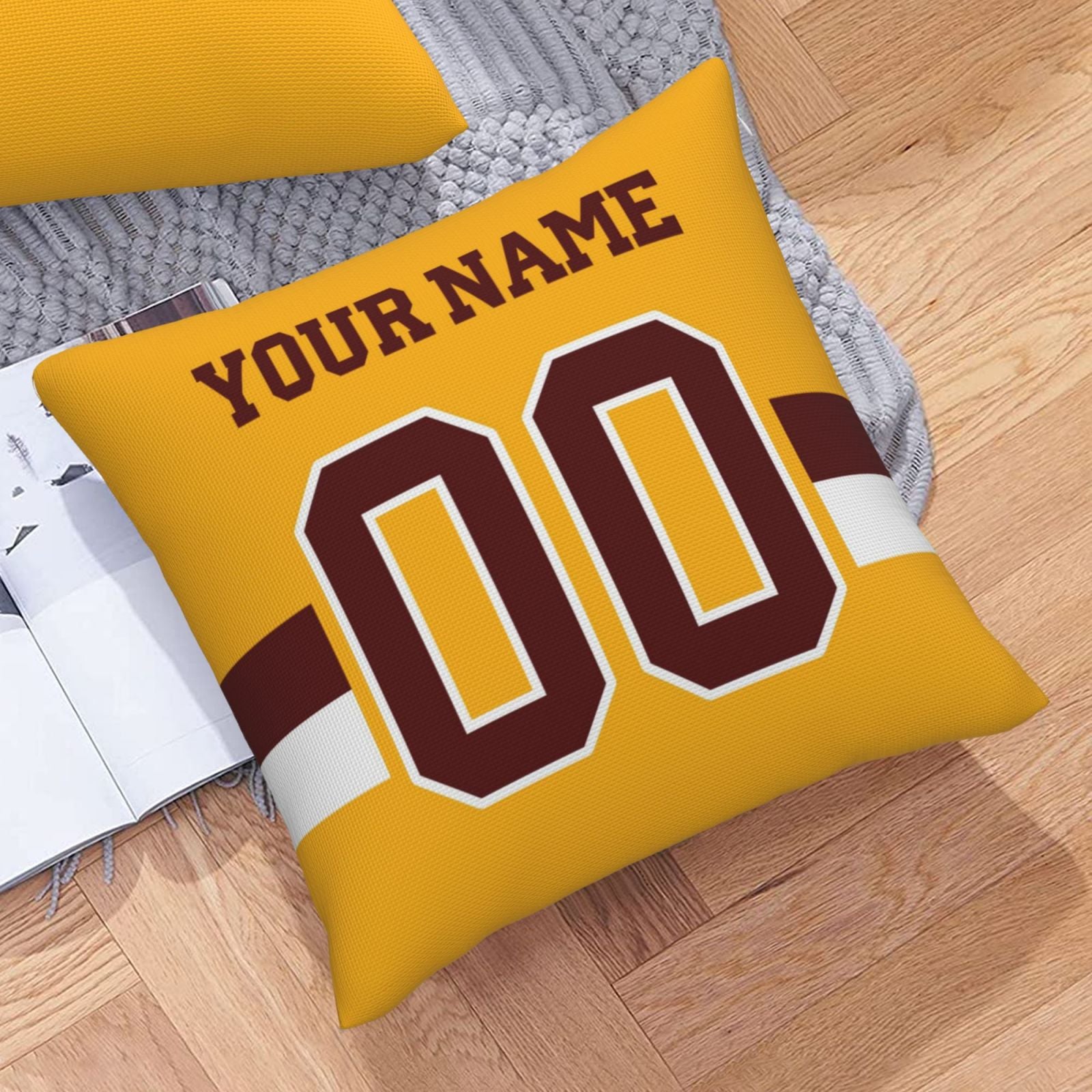 Custom Gold Washington Commanders Decorative Throw Pillow Case - Print Personalized Football Team Fans Name & Number Birthday Gift