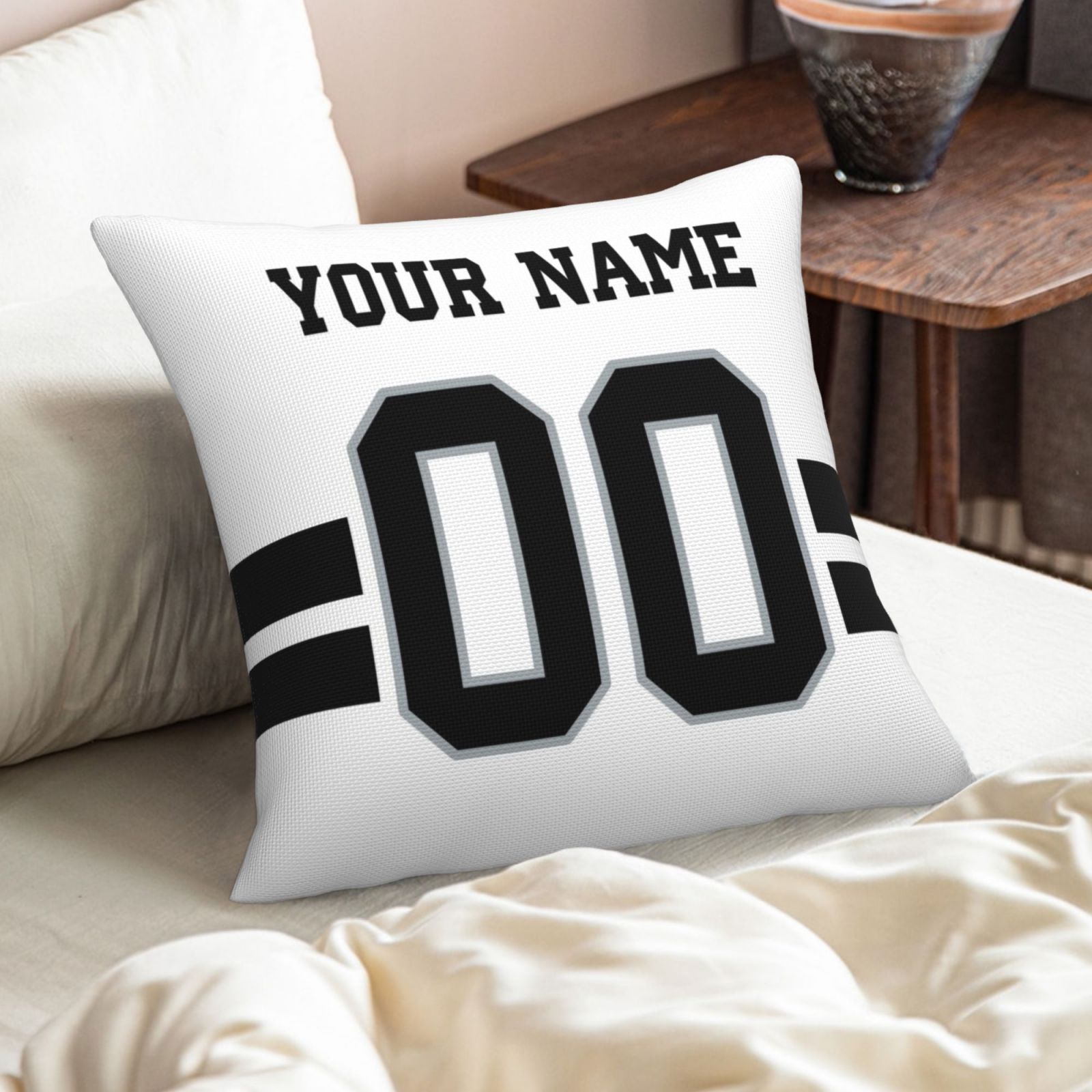 Custom White Las Vegas Raiders Decorative Throw Pillow Case - Print Personalized Football Team Fans Name & Number Birthday Gift