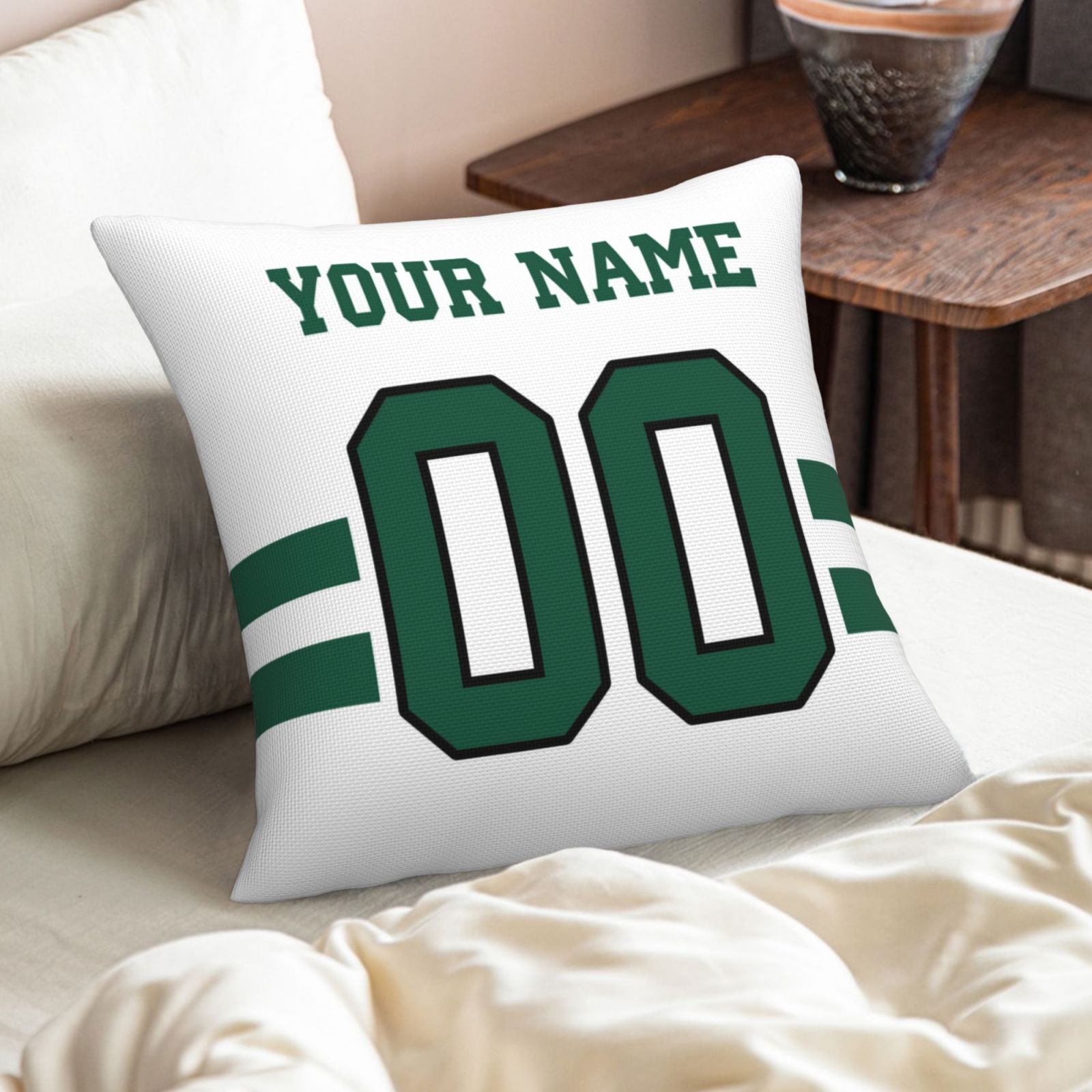 Custom White New York Jets Decorative Throw Pillow Case - Print Personalized Football Team Fans Name & Number Birthday Gift