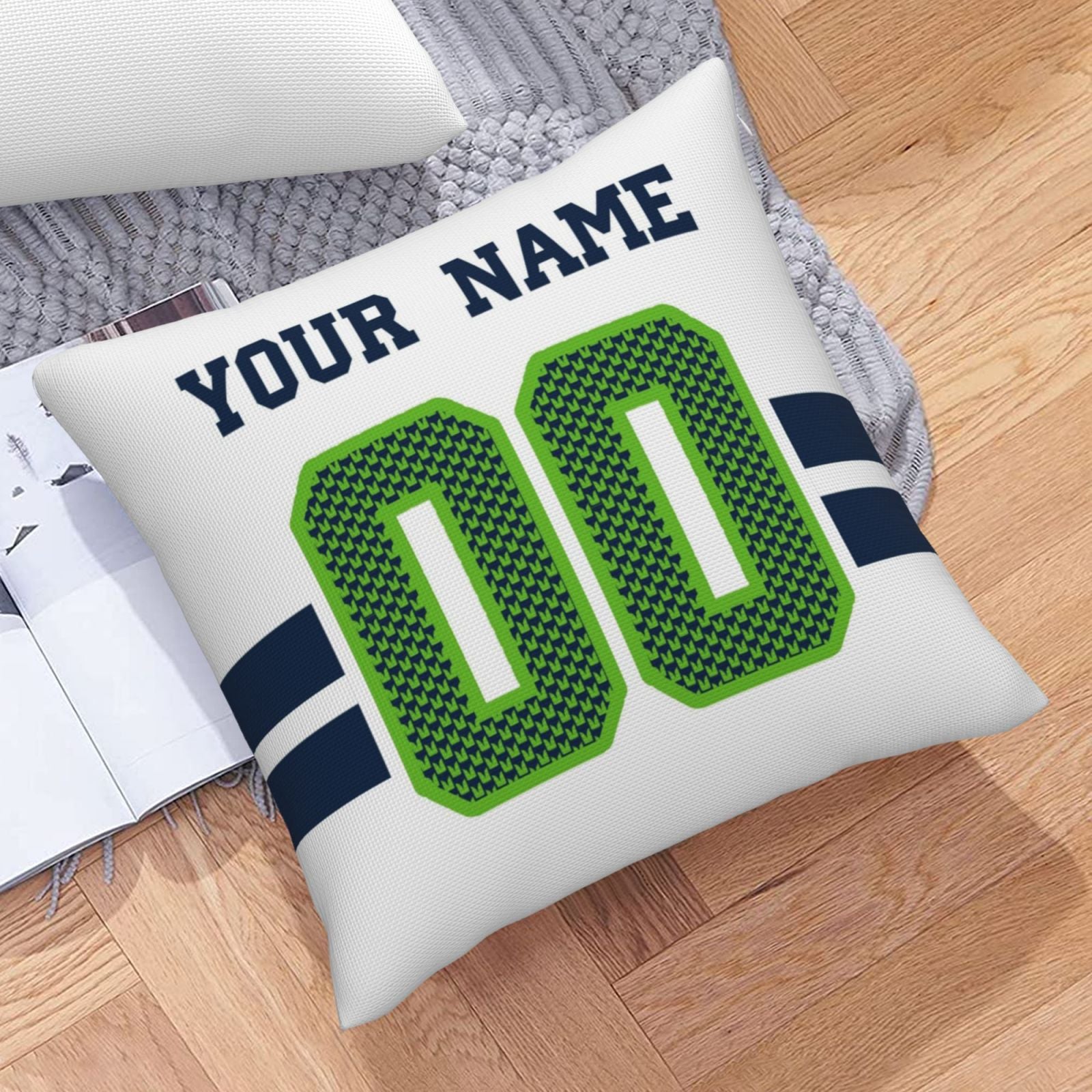 Custom Football Seattle Seahawks Decorative Throw Pillow Cover 18" x 18"- Print Personalized Style Customizable Design Team Any Name & Number