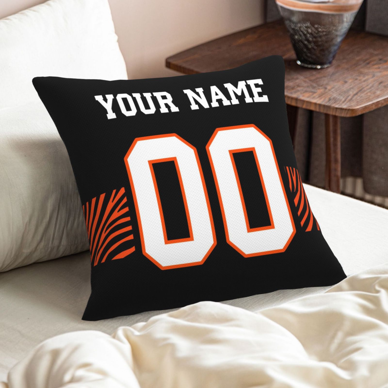 Customized Cincinnati Bengals Black Football Team Decorative Throw Pillow Case Print Personalized Football Style Fans Letters & Number Pillowcase Birthday Gift