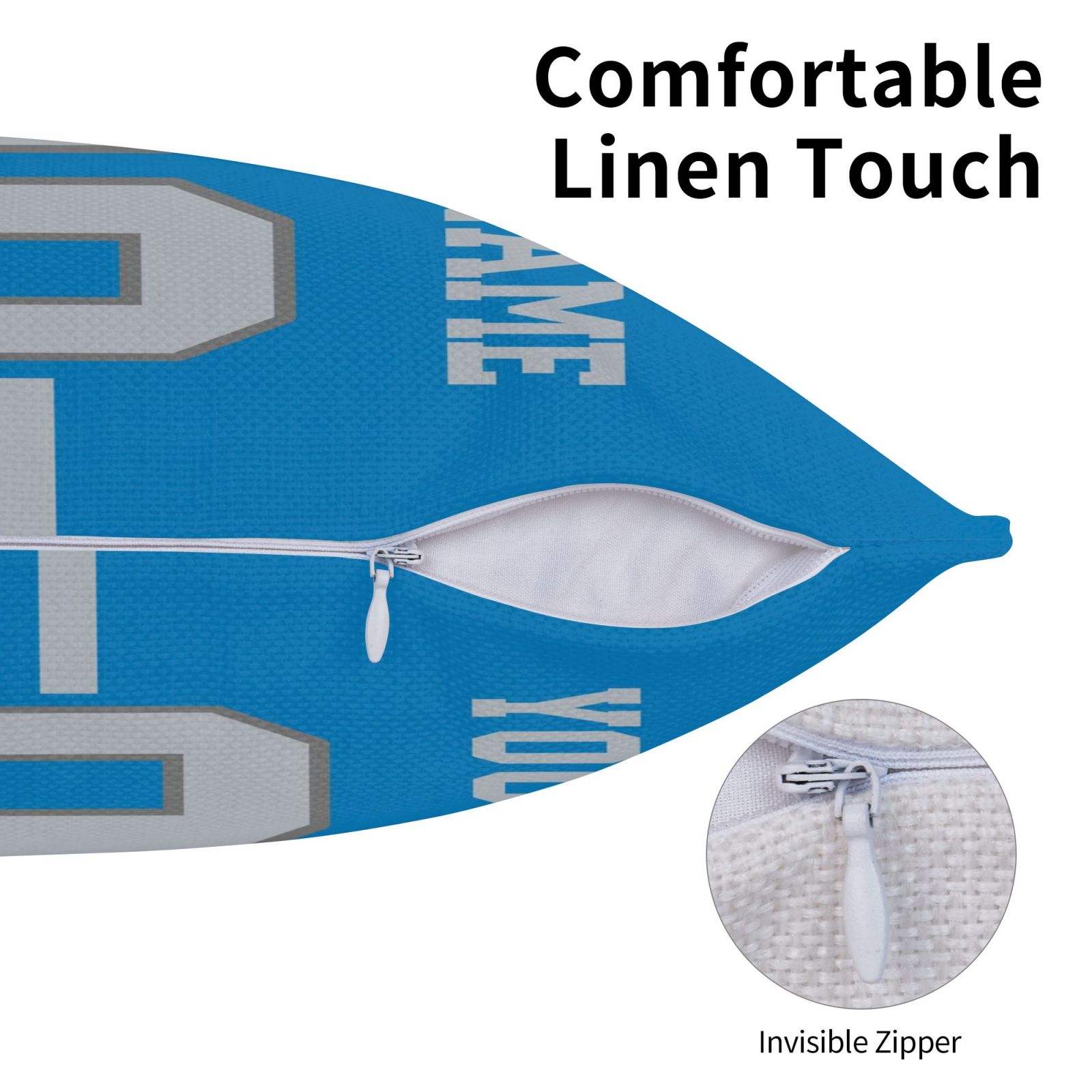 Customized Detroit Lions Football Team Decorative Throw Pillow Case Print Personalized Football Style Fans Letters & Number Blue Pillowcase Birthday Gift