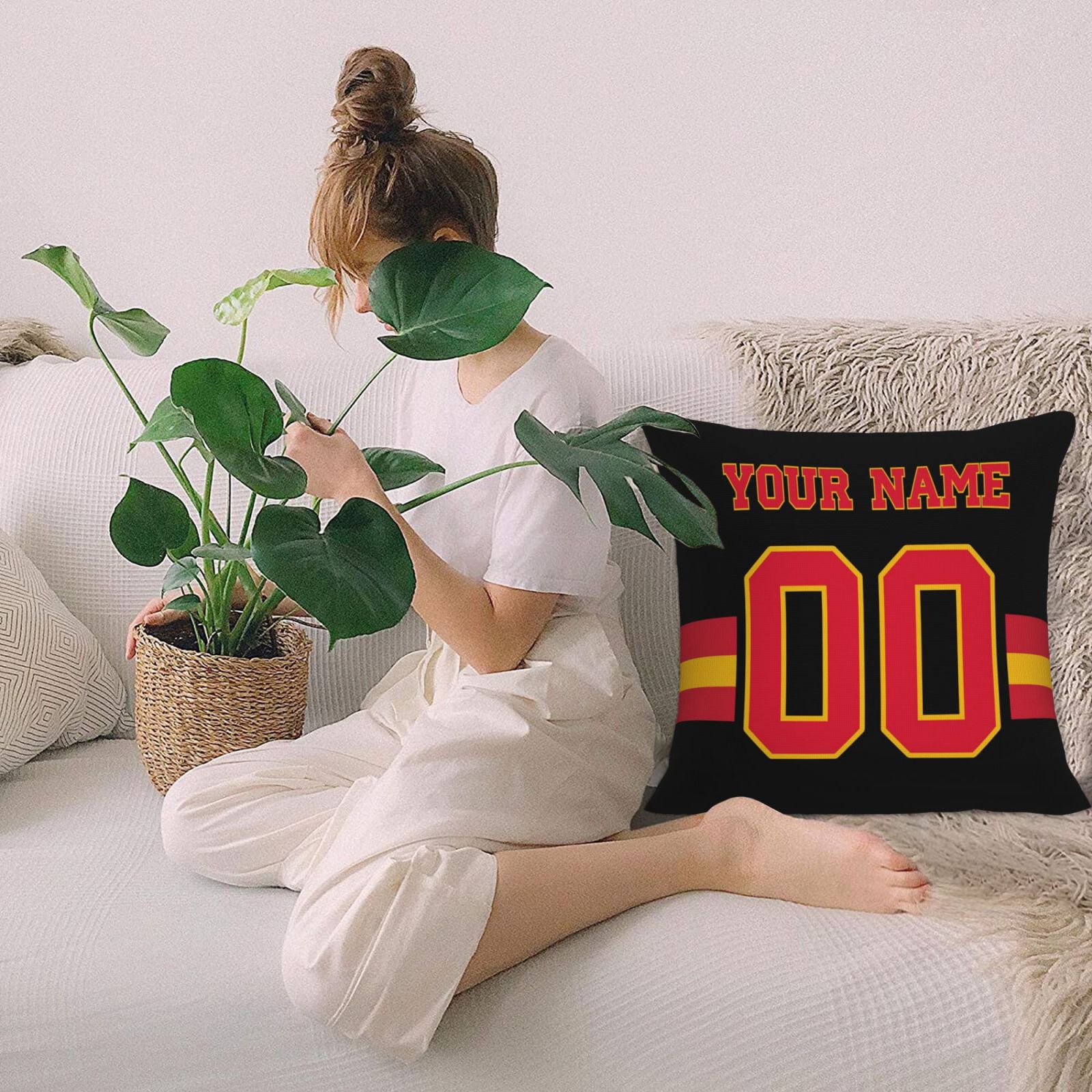 Customized Kansas City Chiefs Football Team Decorative Throw Pillow Case Print Personalized Football Style Fans Letters & Number Black Pillowcase Birthday Gift