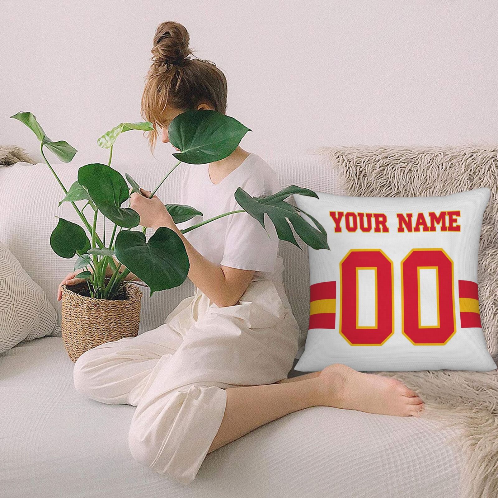 Customized Kansas City Chiefs Football Team Decorative Throw Pillow Case Print Personalized Football Style Fans Letters & Number White Pillowcase Birthday Gift