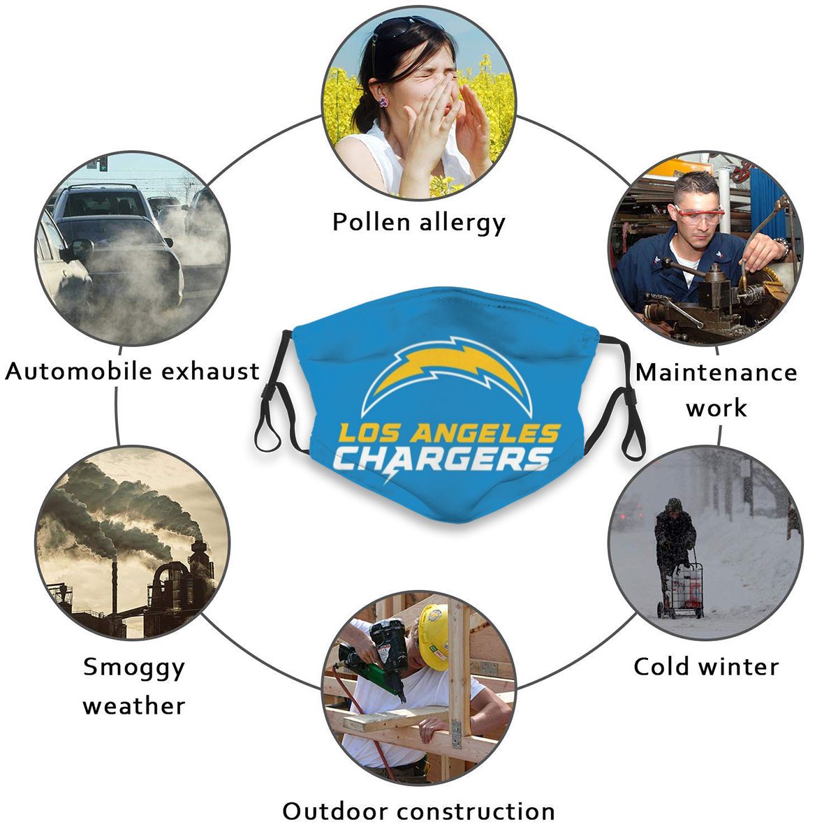 Print Football Personalized Dust Los Angeles Chargers Face Mask With PM 2.5 Filter