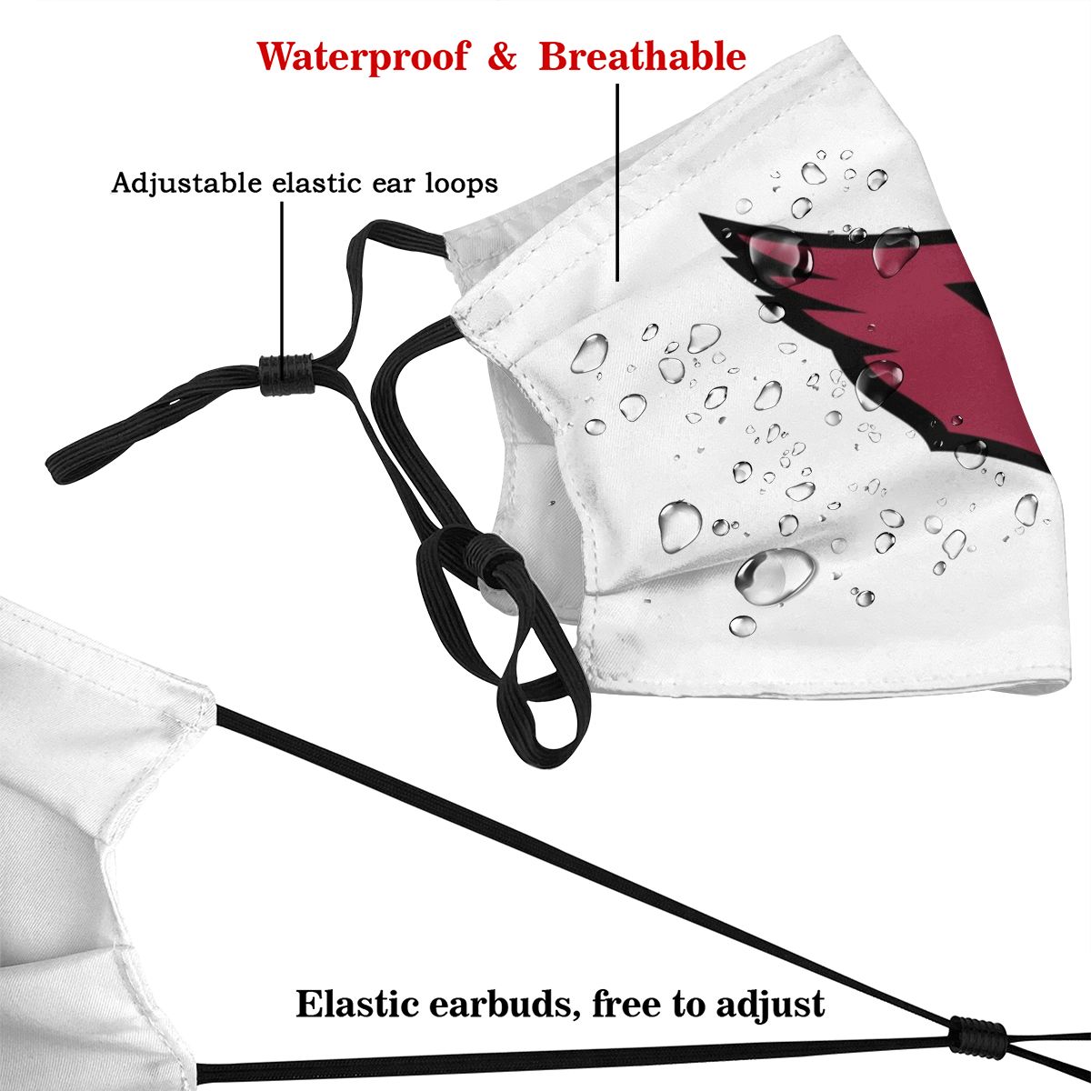 Print Football Personalized White Arizona Cardinals Adult Face Mask With Filters PM 2.5