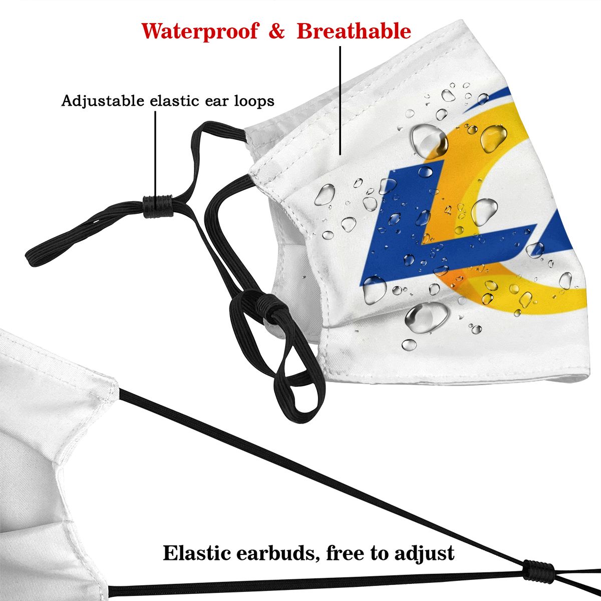 Print Football Personalized White Los Angeles Rams Adult Dust Mask With Filters PM 2.5